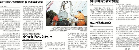 “6年来,他们一直照顾我,家里的新电线都是他们换的……”长兴县城北小区孤寡老人王亚男对长兴吴克忠供电服务队充满感激。家住虹星桥镇里塘村的村民丁文松告诉笔者,虽然当前用电形势紧张,但服务队已经对村里的供电设施进行了全面改造,他家用电情况反而比去年更好。