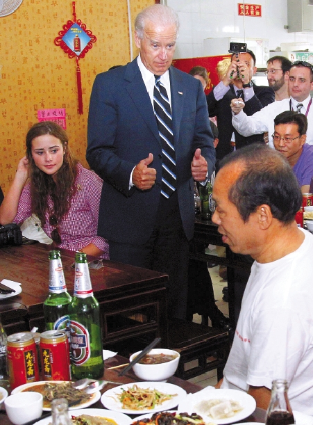 8月18日中午,拜登兴致勃勃地在美新任驻华大使骆家辉的陪同下,和孙女一起到鼓楼附近吃北京小吃,其间还热情地和边上其他顾客打招呼。 视野网供图