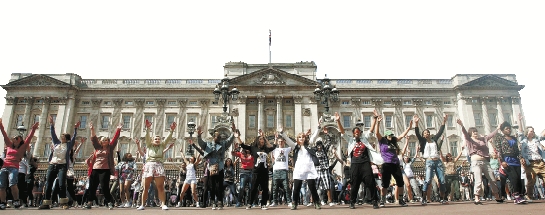 2011年5月9日,英国东伦敦大学的学生在白金汉宫外举行“皇家快闪舞蹈”活动。通过互联网或手机联系进行的“快闪”活动时下非常流行,然而一旦被用来召集非法活动,后果也非常严重。 视野网供图