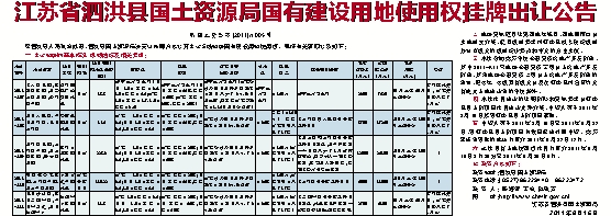江苏省泗洪县国土资源局国有建设用地使用权挂牌出让公告