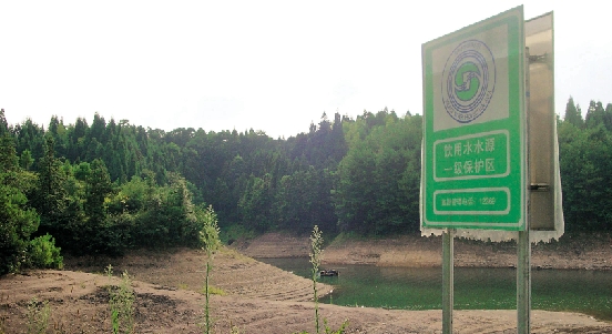 百丈漈水库边竖立着饮用水水源“一级保护区”标牌。