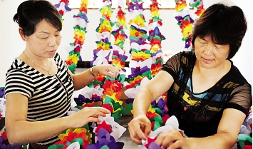 8月14日,武义县王宅镇王宅村妇女做来料加工。 据新华社
