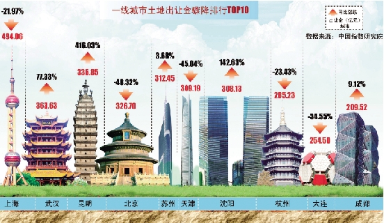 | 一线城市土地出让金全部骤降 北京跌幅近五成 近日,中囯指数研究院发布数据,今年上半年,全国130个城市土地出让收入总额为7524亿元,同比下跌5.5%。土地出让收入排名前十的城市中,出现下跌的5个城市全部为一线城市或者发达的二线城市,同比降幅最大的为北京,降48.32%,降幅最小的为上海,降21.97%;而上涨的5个城市均为相对欠发达的二线城市。 |