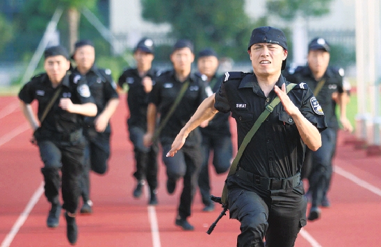 日前,黄岩特警开展训练,提高应付各种突发事件的能力。 喻跃翔 摄