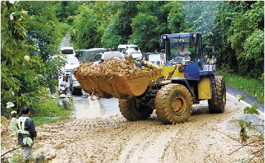 8月22日,湖北兴山、神农架两地遭暴雨袭击。据湖北省防汛部门初步汇总统计,暴雨造成兴山县、神农架林区的14个乡镇、4.2万人受灾。灾害发生后,当地迅速开展抢险自救。目前,因神农架泥石流而受困的200多名游客已全部得到妥善安置。图为8月23日,在209国道神农架林区管段,大型挖掘机对泥石流进行清理。 新华社发