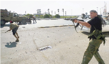 8月22日在的黎波里,利比亚反对派武装人员与政府军交火。 新华社发