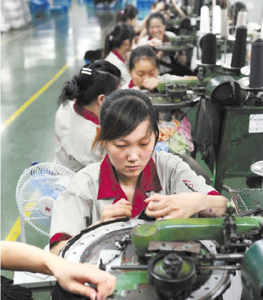 “钱荒”、“电荒”……是中小企业成长的困扰。图为义乌一家小袜厂的工人们正在赶单解燃眉之急。 梁臻 摄