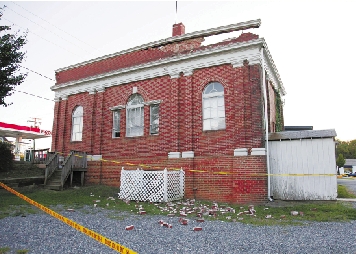 8月23日,美国东部弗吉尼亚州米纳勒尔镇,警戒线内是一间遭遇地震袭击而损坏的房屋。 新华社发