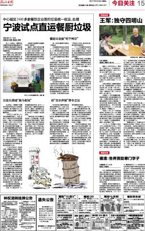 宁波试点直运餐厨垃圾