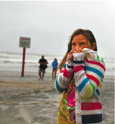 8月27日,9岁的里安农·肖站在美国北卡罗来纳州的一处海滩上。新华社发