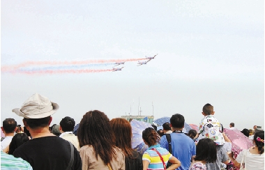 8月28日,长春市民在吉林省长春市大房身机场欣赏了长春首届航空开放日的提前预演。据悉,9月1日,中国空军航空大学开学典礼暨吉林长春首届航空开放日将在长春市正式举行,全面展示60年来人民空军飞行员培养和飞行基础教育取得的辉煌成就。 新华社发