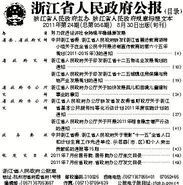 编辑部:(0571)87053687 传真:(0571)87054639 公报电子版网址:zfgb.zj.gov.cn