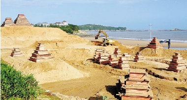 8月30日,第十三届中国舟山国际沙雕节堆沙工程在舟山朱家尖南沙进行,不少沙堆已经成形。本届沙雕节9月开幕,以“沙雕迪士尼”为主题,演绎迪士尼百年经典。 通讯员 姚峰 摄