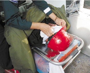 8月30日,获救矿工在急救车内得到救治。 新华社记者 王松 摄