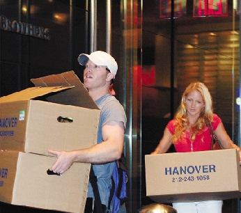 2008年9月15日,美国第四大投行雷曼兄弟宣告破产,标志着美国次贷危机最终演变成全面金融危机。这次危机发生的真正原因是美国为伊拉克战争巨额烧钱。图为2008年9月14日晚,两名雷曼兄弟员工抱着个人物品走出公司大楼。