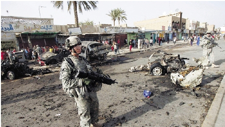 2003年3月20日,美国以伊拉克隐藏大规模杀伤性武器并暗中支持恐怖分子为借口,绕开联合国安理会,公然单方面决定对伊拉克实施大规模军事打击。伊拉克战争遭到世界大多数国家和民众质疑和反对,并对世界产生了广泛而深远的影响。图为美军士兵在巴格达附近地区警戒。 新华社发