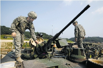 2011年9月1日,韩国抱川,美韩军队在一处靶场举行联合实弹射击演习。 视野网供图