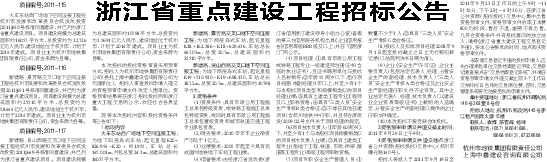 浙江省重点建设工程招标公告