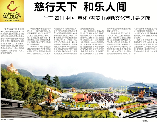 为办好2011中国(奉化)雪窦山弥勒文化节,奉化市委、市政府从今年8月份开始,专门成立筹备机构,认真组织、精心策划、周密部署,高规格高起点全程包装宣传弥勒文化与旅游资源。