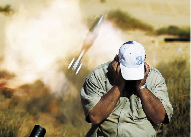 9月17日,在苏尔特附近,利比亚执政当局武装成员在发射迫击炮。 新华社发