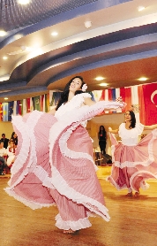 9月17日,奥地利首都维也纳的十多个外国人团体在市区北部的一个文化中心齐聚一堂,参加外国人舞蹈比赛。图为当晚来自哥伦比亚的代表表演舞蹈。 新华社发