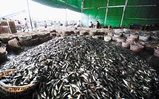 9月18日,在舟山市中沙水产交易市场,渔民将开渔后捕捞的第一网渔货投放市场。与往年相比,今年伏休后的开渔第一网收成不错。 胡社友 摄