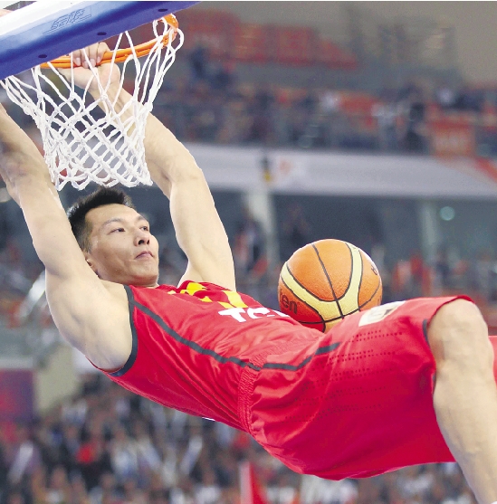 9月21日,中国队球员易建联在比赛中扣篮。当日,在武汉进行的2011年男篮亚锦赛第二阶段小组赛中,中国队以84比58战胜日本队。 新华社发