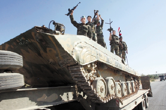 8月10日,叙利亚军队装甲部队从哈马撤离(资料照片)。 新华社发