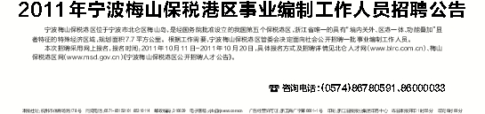 2011年宁波梅山保税港区事业编制工作人员招聘公告