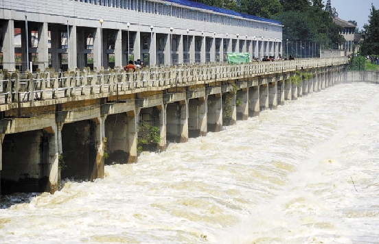 9月21日,杜家台分洪闸开闸泄洪。 新华社记者 郝同前 摄