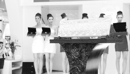 9月14日,2011深圳国际珠宝展开幕式现场,“华夏五九至尊金”是第一块公开展示的“高纯金”。 刘荣华 摄