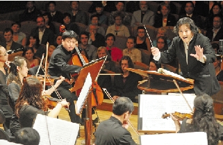 汤沐海(右上)指挥浙江交响乐团演奏德沃夏克作品。 新华社发