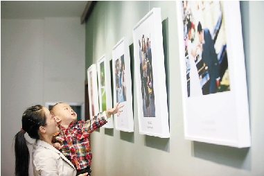 昨日,市民在观看邵华泽书法摄影作品展。 魏志阳 胡元勇 摄