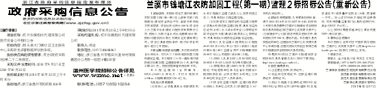 本次招标公告同时在中国采购与招标网、兰溪市公共资源交易中心网(http://www.lxxzfw.gov.cn)及《浙江日报》上发布。