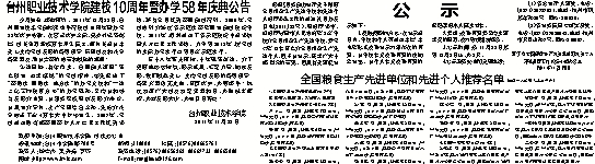 台州职业技术学院建校10周年暨办学58年庆典公告