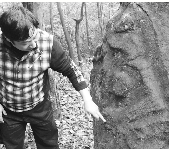 当地文史爱好者江东放找到了一块有“眼睛”痕迹的石头。江晨 摄