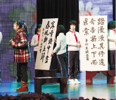 在近日举行的杭州上城区中小学生第20届艺术节上,建兰、崇文等4个学校学生的现场书法表演获书画类节目一等奖。 通讯员 黄燕 摄
