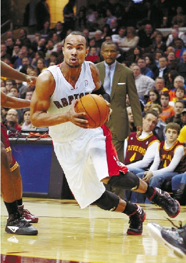 12月26日,猛龙队球员杰里德·贝利斯(前)在比赛中进攻。当日,在NBA常规赛中,多伦多猛龙队客场以104比96战胜克利夫兰骑士队。 新华社发