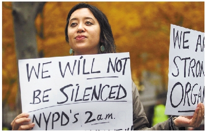 11月15日,一名“占领华尔街”活动抗议者手持写有“我们不会沉默”字样的标语。