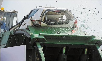 12月27日,在本田公司位于泰国大城府的工厂,一辆被洪水淹过的本田车被销毁。日本汽车制造商本田公司位于泰国的工厂27日开始销毁1000多辆遭洪水淹过的本田新车,以向消费者表明绝不容忍“水淹车”流入市场的决心。 新华社发