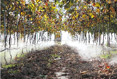 ▲嘉兴市南湖区大桥镇的葡萄田里,技术员通过手机对大棚内的空气温湿度、土壤水分含量等进行实时检测,并实现自动灌溉。