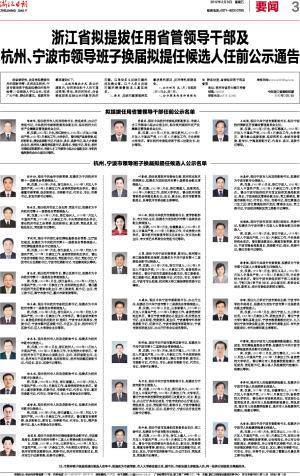杭州、宁波市领导班子换届拟提任候选人任前公示通告