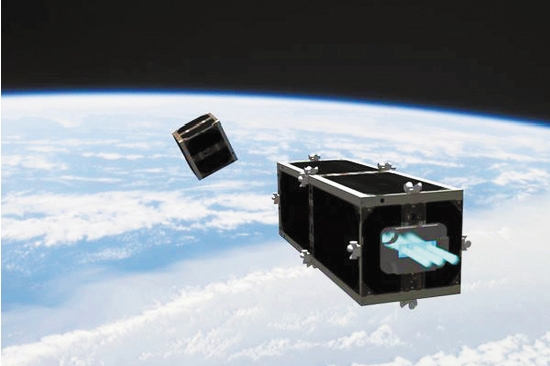 瑞士联邦理工学院洛桑分校公布了一项太空垃圾清扫试验计划,准备发射人造卫星捕捉报废卫星和运载火箭的碎片等太空垃圾,并将其带入地球大气层焚烧。清洁太空的特殊卫星实际上更像是一种机器人,它的造价大约合1100万美元。图为模拟图。