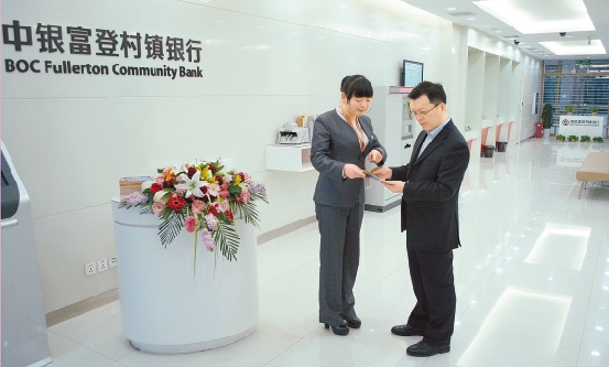 中银富登村镇银行在镇海正式亮相,图为工作人员与客户沟通现场。 张如新 摄