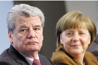2月19日,德国总理默克尔(右)和新一任德国总统人选约阿希姆·高克在柏林出席新闻发布会。 新华社发
