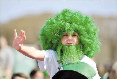 3月17日,在美国伊利诺伊州的芝加哥,七岁的马克思·朗戴着绿色的假发和假胡子坐在爸爸的肩膀上观看圣帕特里克节游行。 每年3月17日是爱尔兰人纪念守护神圣帕特里克的节日,至今已有1500多年历史。这一节庆传统被爱尔兰移民带入美国后,每当圣帕特里克节来临时,美国各地都会举行游行庆祝活动。绿色是爱尔兰的标志,也就成为了这个节日的主色调。 新华社发 |