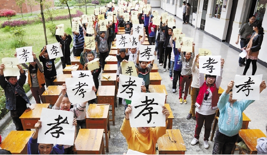 4月18日,诸暨市举行“崇孝的城市,和美的家”系列活动及万人写“孝”书法比赛,让人们学会感恩、实践孝行,体验“孝”字真谛。