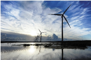 温岭东海塘风力发电场。这里每台风机一年的发电量,可供2000个普通家庭的生活用电。地处东南沿海风能带的浙江,具有发展风力发电得天独厚的优势。 吴鹏飞 摄