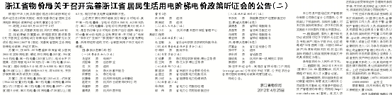浙江省物价局关于召开完善浙江省居民生活用电阶梯电价政策听证会的公告(二)