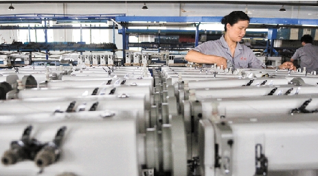 ③制造业投资持续增长,为我省经济增添不竭动力。图为台州某缝纫机制造厂的流水线。 郏策 摄
